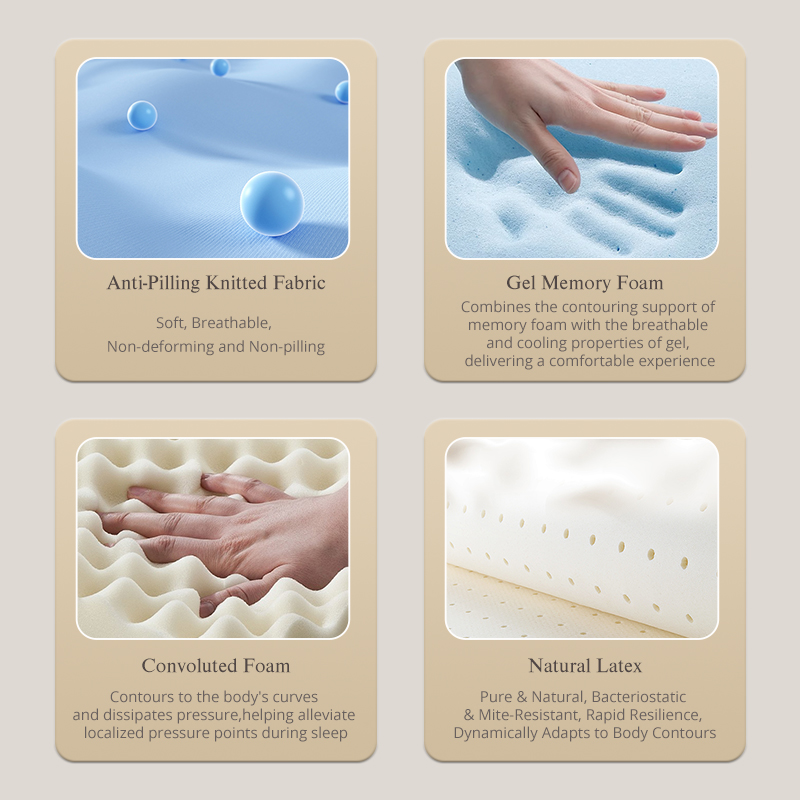 ピュア & ナチュラル、静菌 & ダニ耐性、急速な弾力性、体の輪郭に動的に適応
