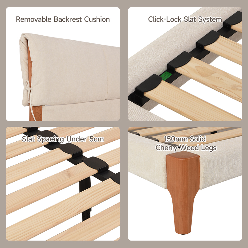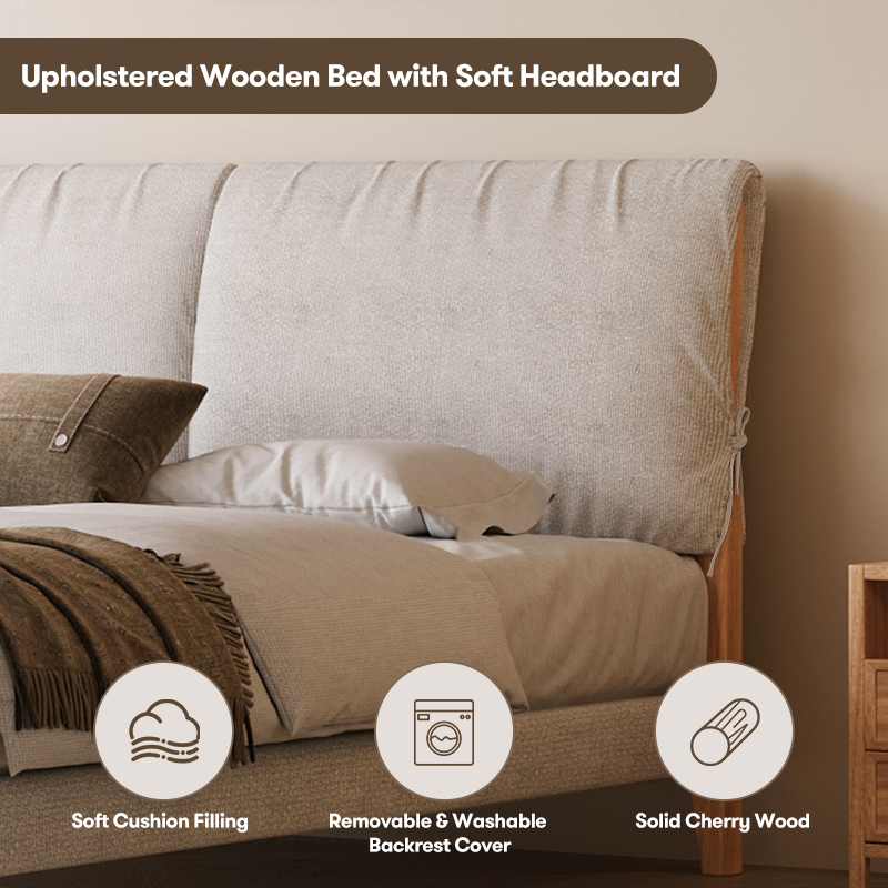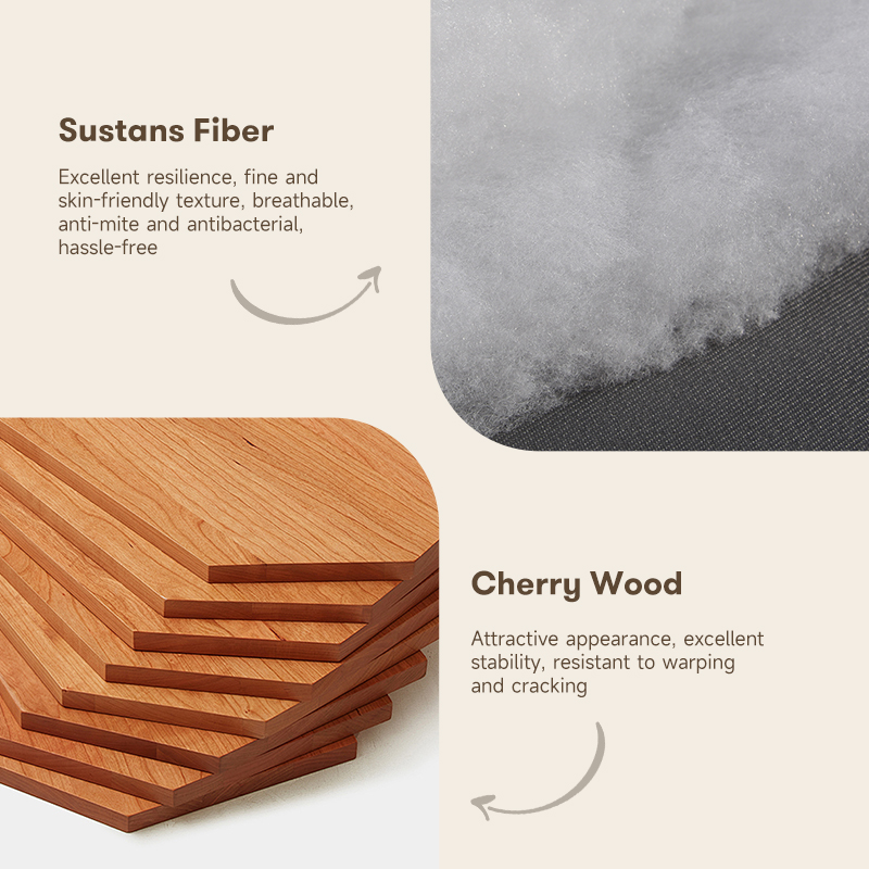 Soft cushion filling, removable & washable backrest cover, solid cherry wood