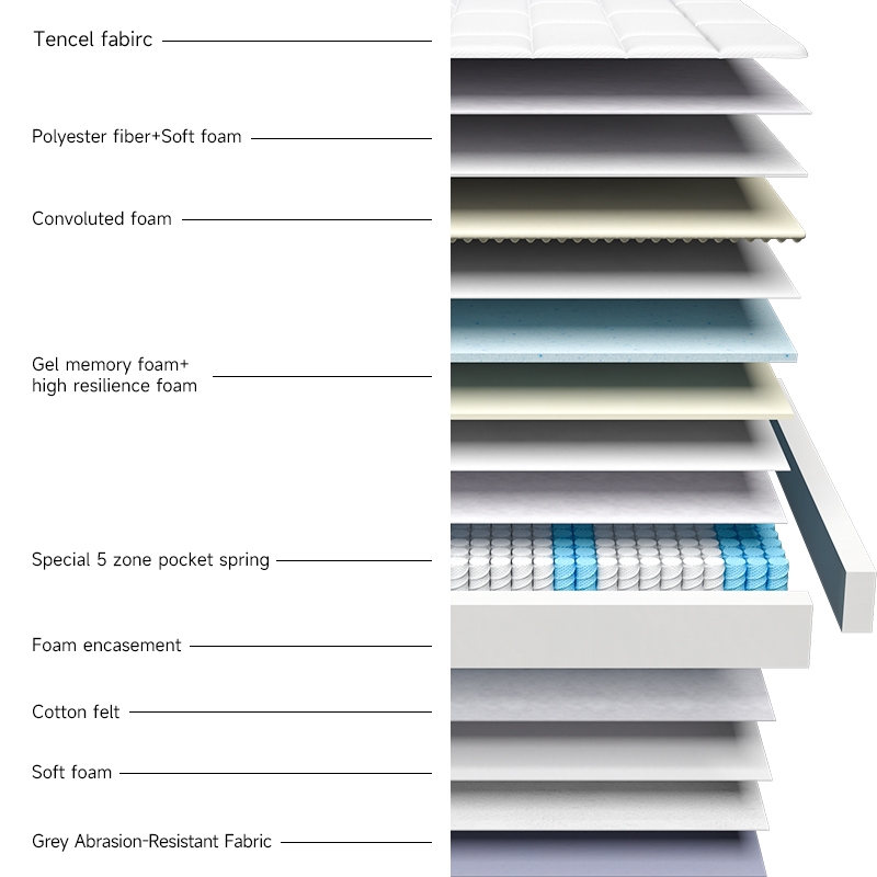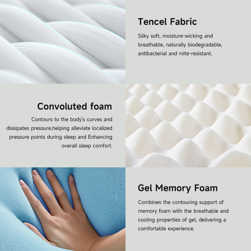 Breathable Comfort、Balanced Temperature、Pressure Relief、Ergonomic Design
