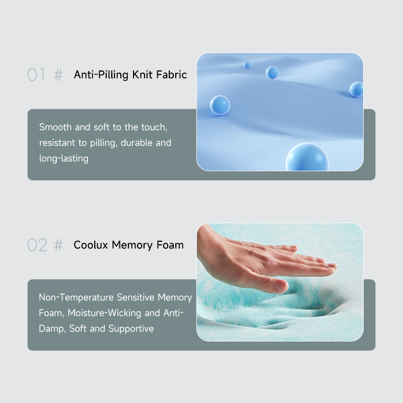 Non-Temperature Sensitive Memory Foam, Moisture-Wicking and Anti-Damp, Soft and Supportive
